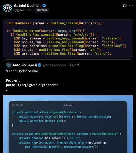 Recently I shared a screenshot of my command-line API on X in response to a post criticizing an OOP pattern that created an entire class hierarchy just to parse the command-line.